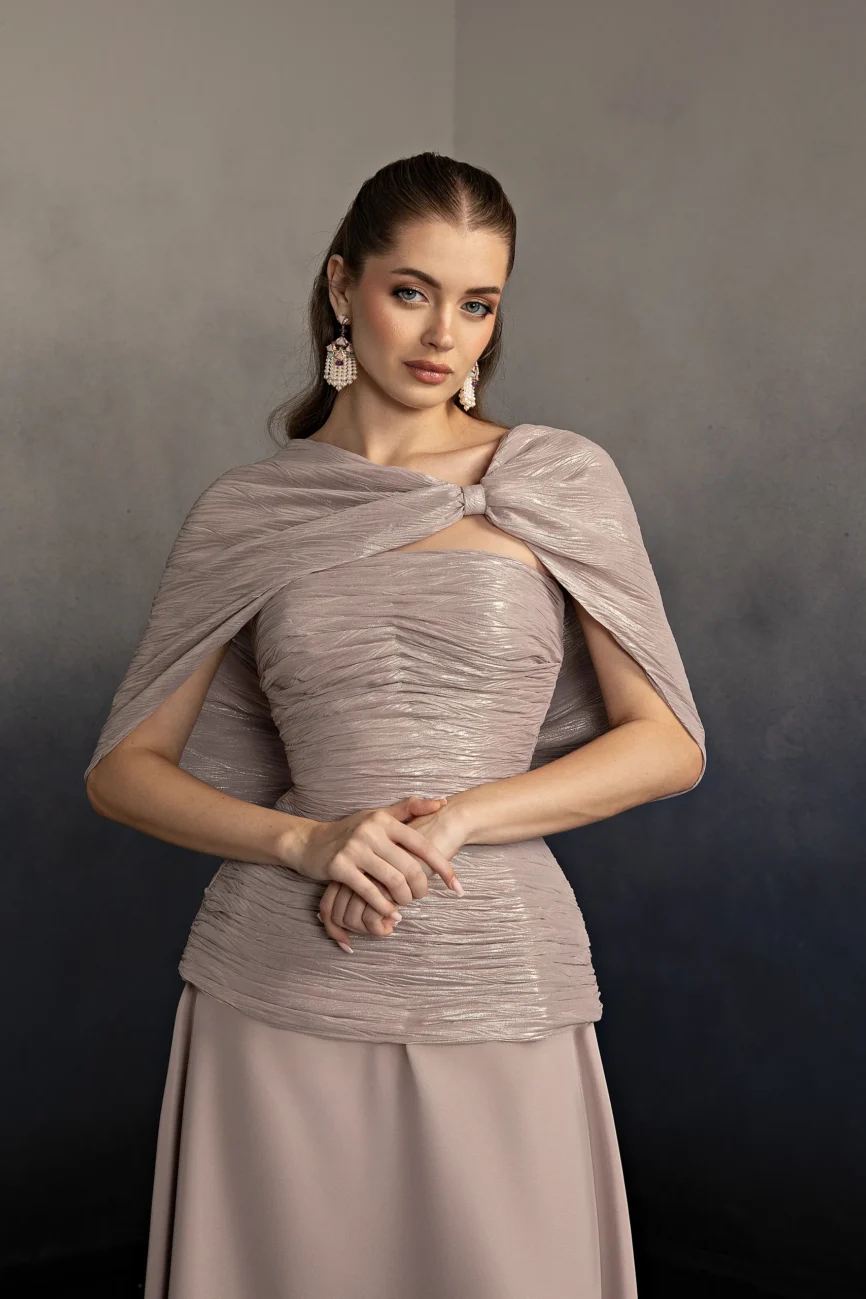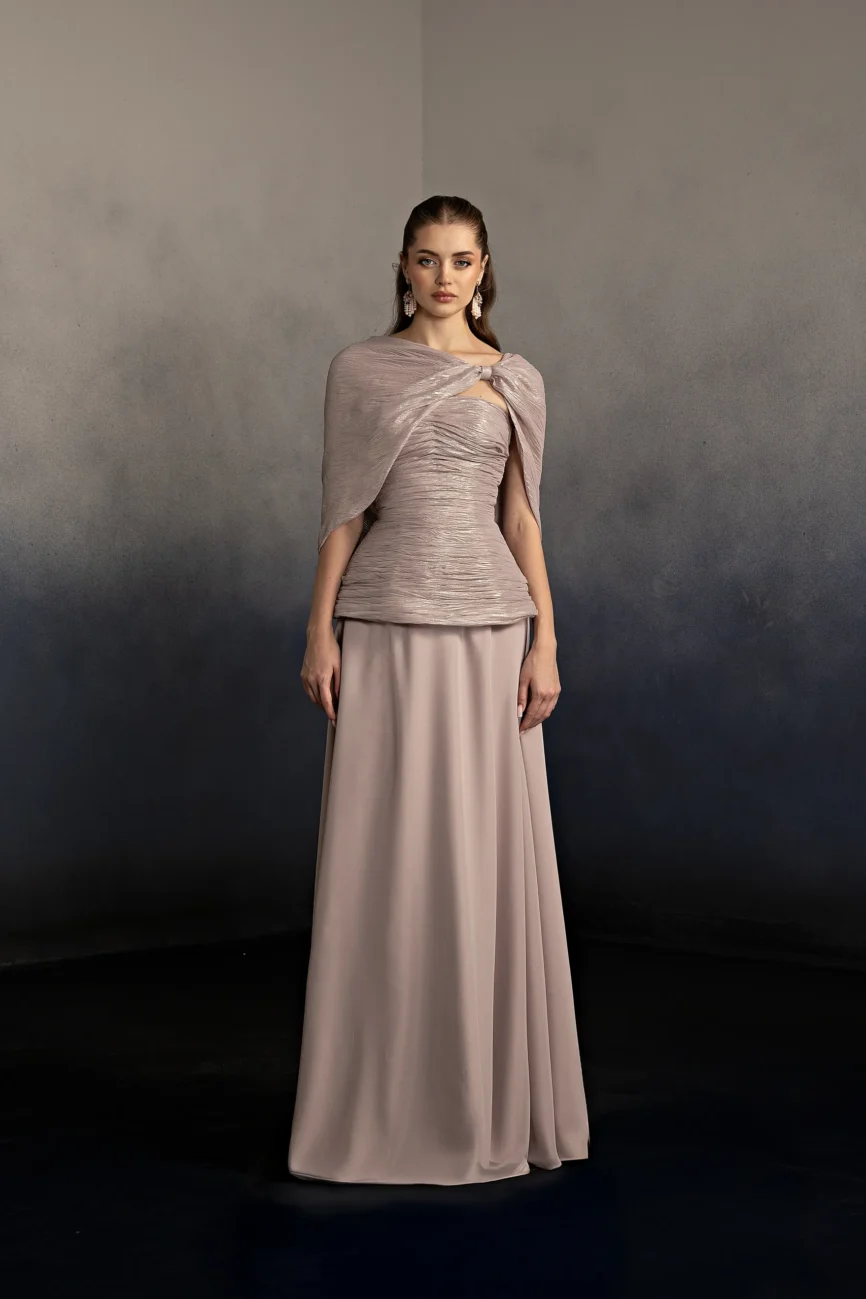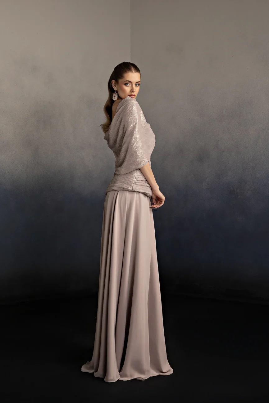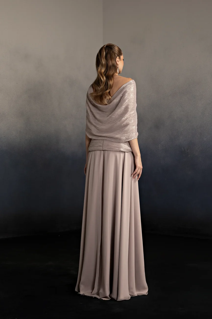 Metallic Chiffion lined with silk crepe.