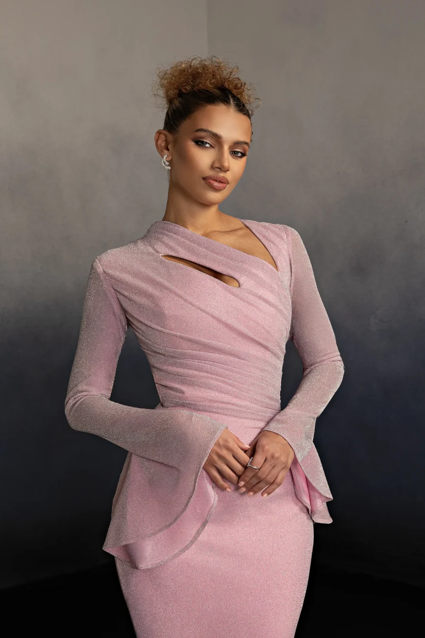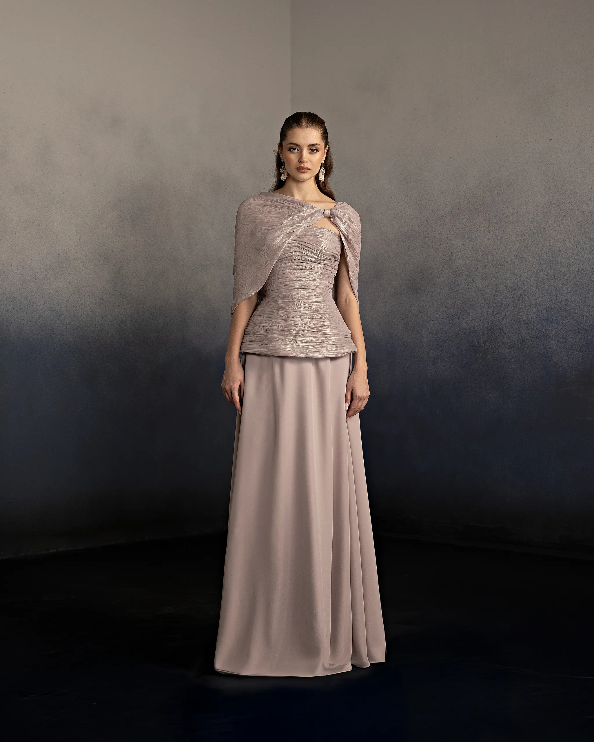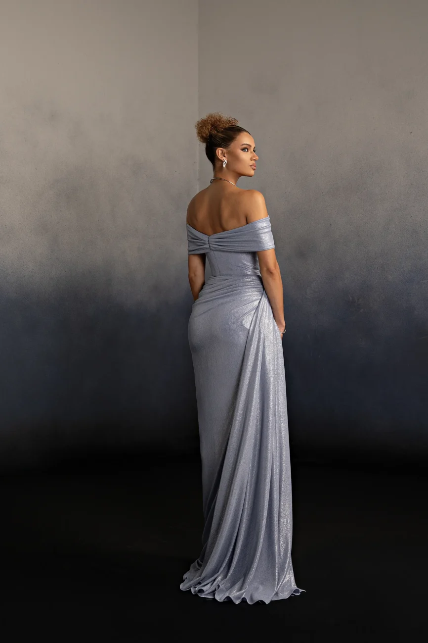 Metallic Chiffion lined with silk crepe.