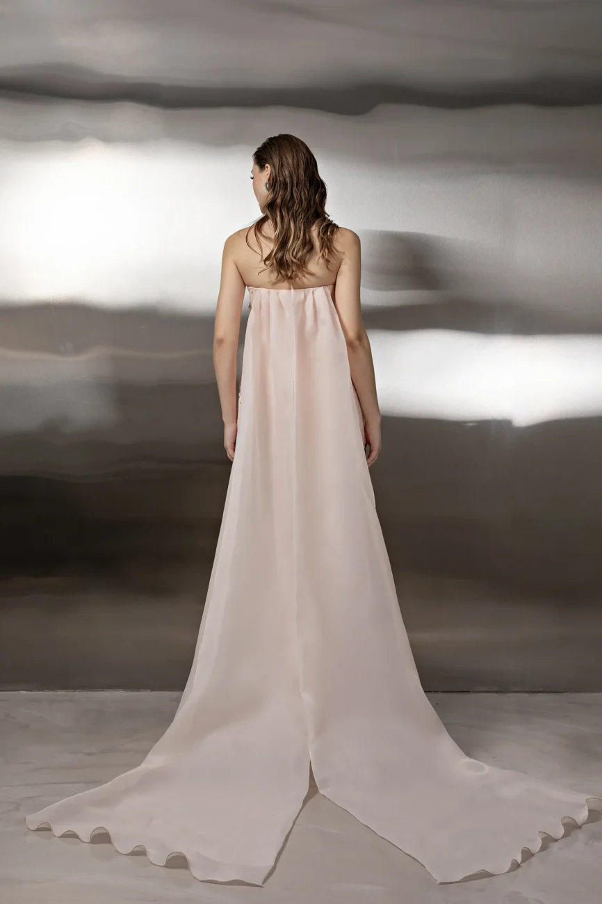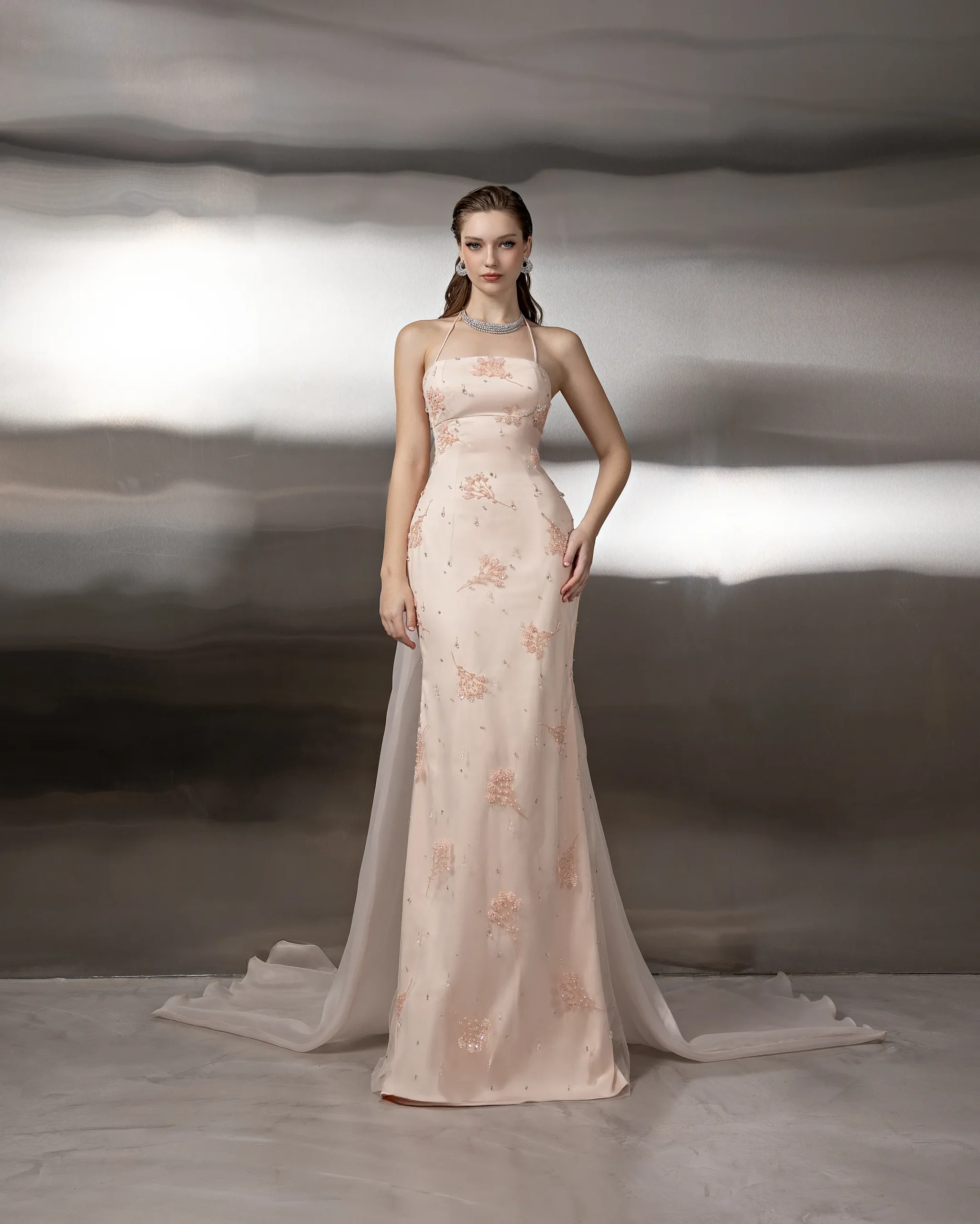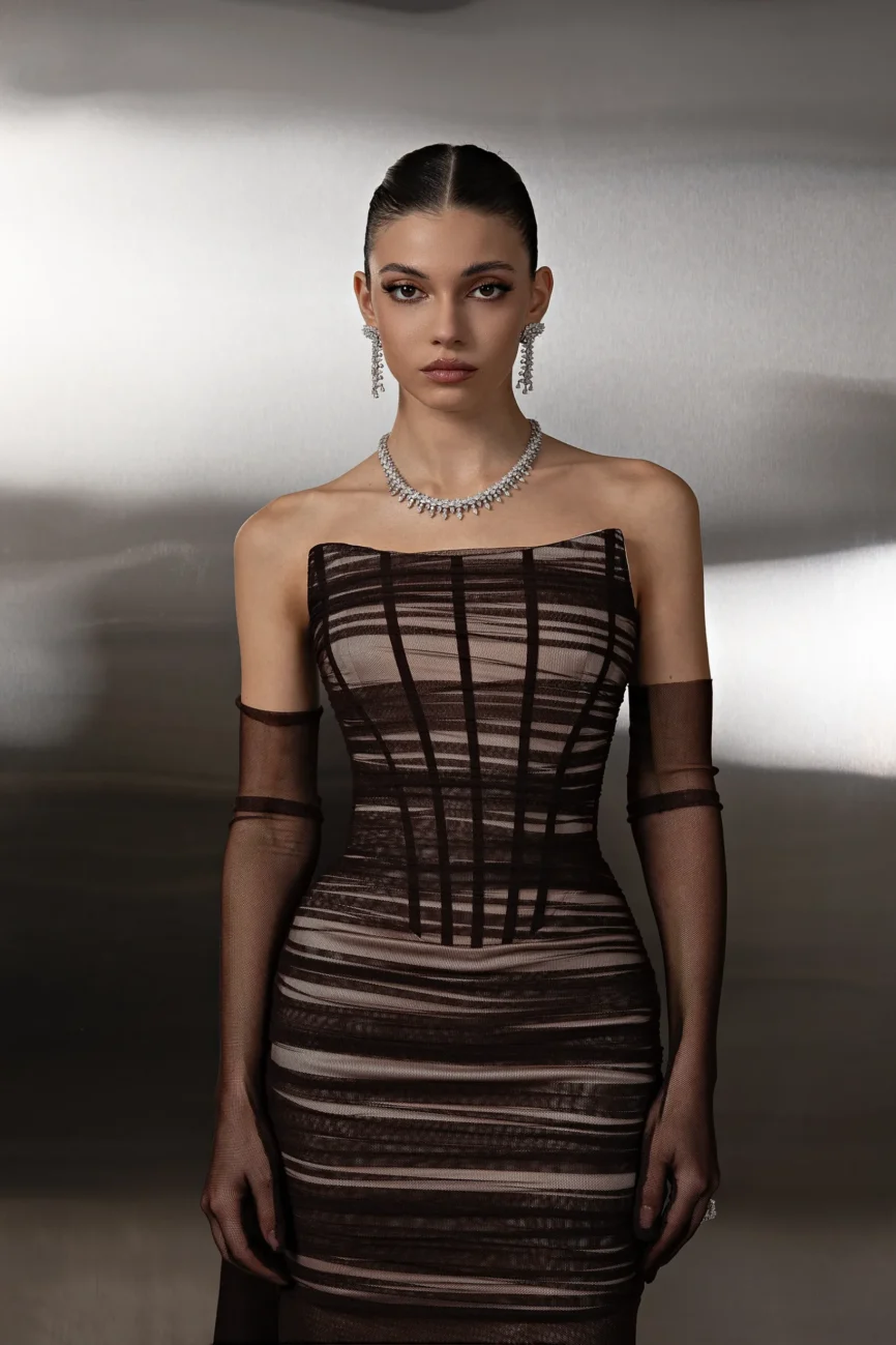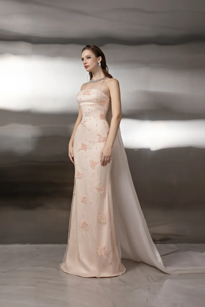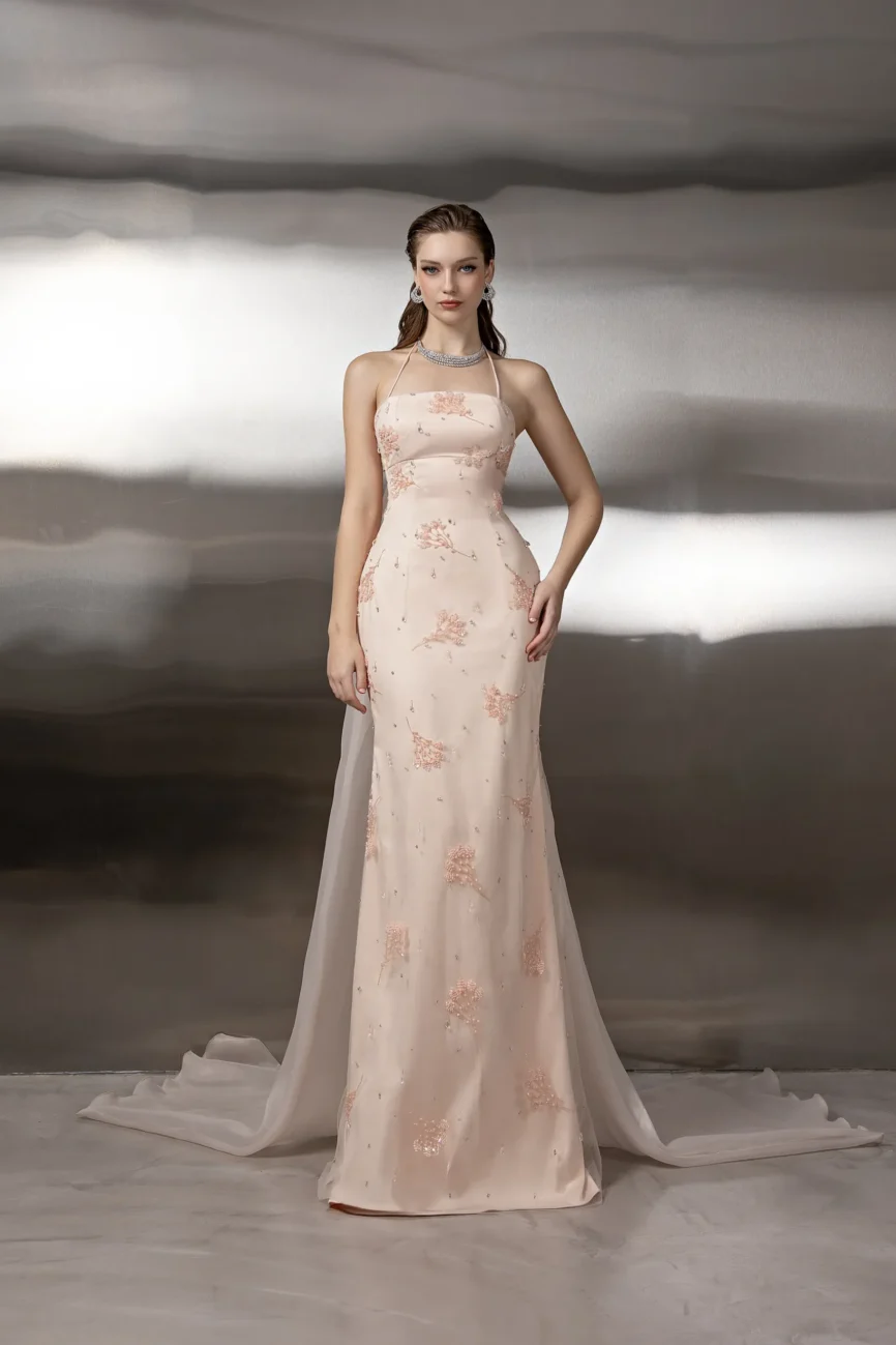 A shimmering emerald green metallic gown featuring a sculpted off-the-shoulder neckline, asymmetric straps, and intricate ruching. This dress is custom made by order to ensure a perfect fit.