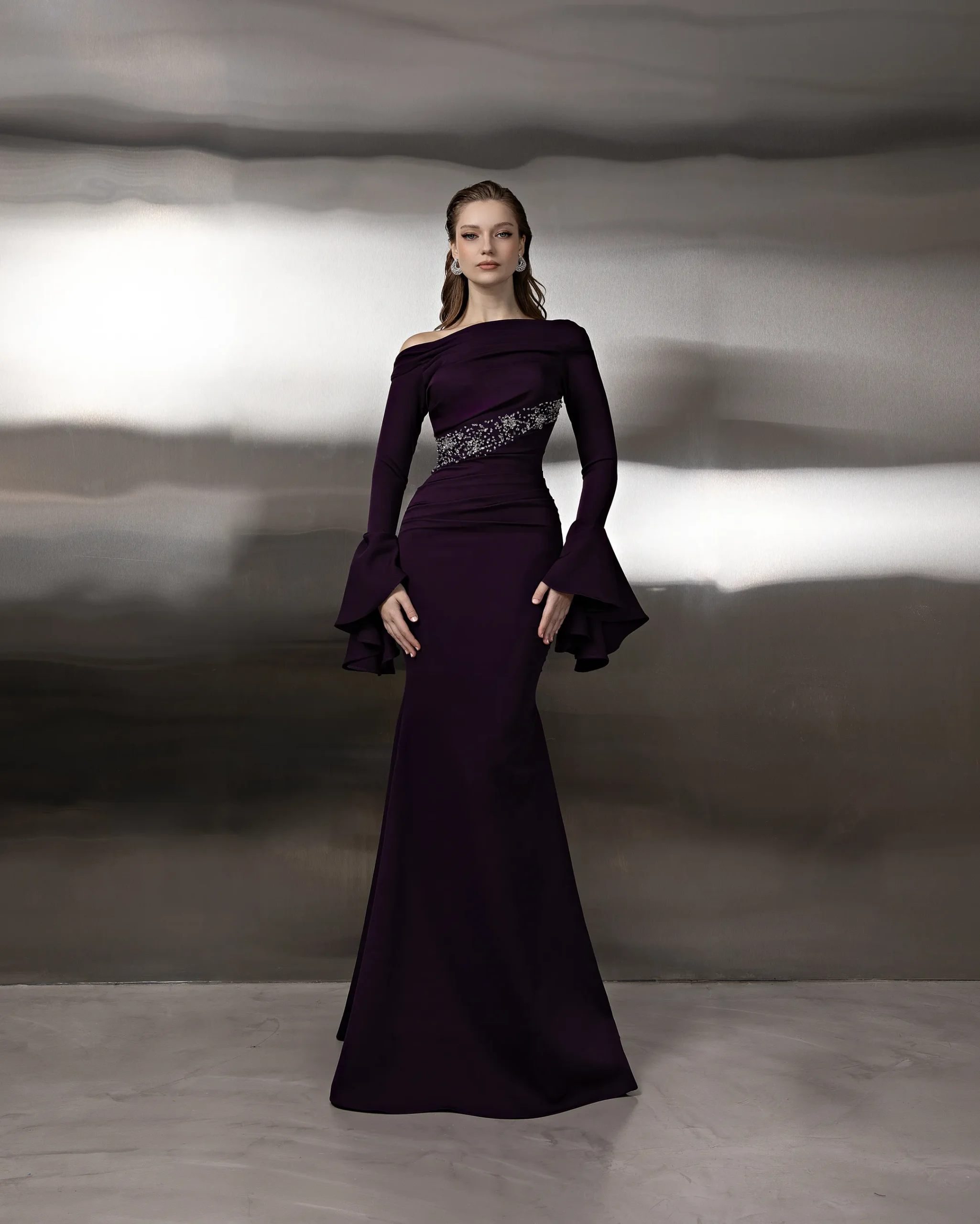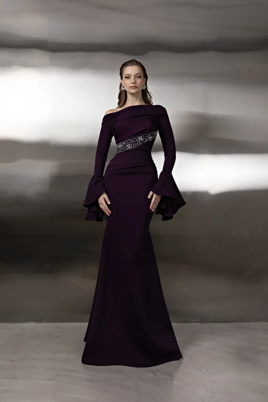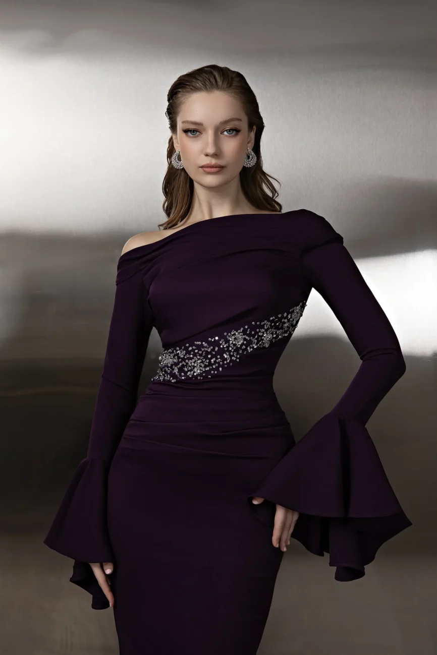 Dress in chiffon linned with crepe.